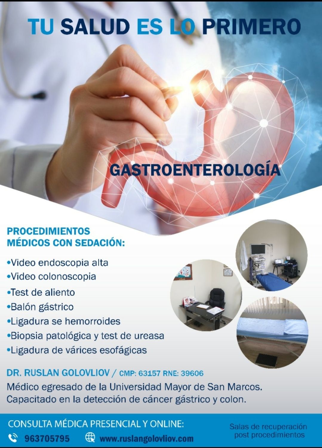 - Médico Gastroenterologo egresado de Universidad Mayor de San Marcos