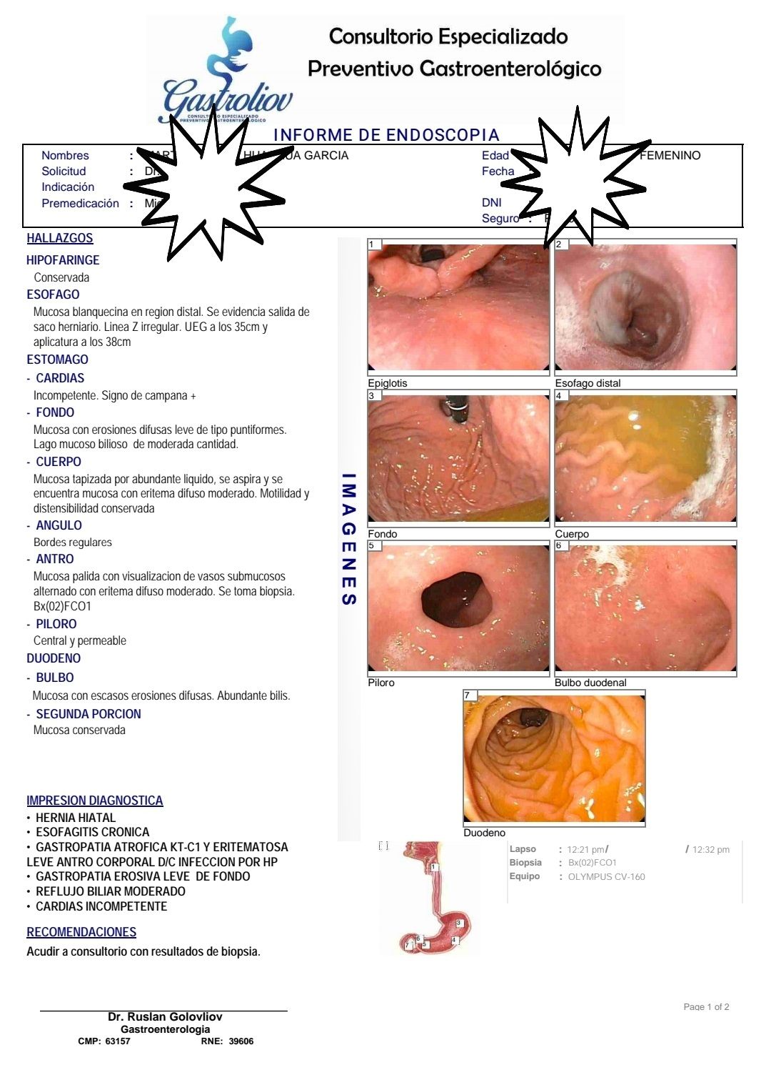 Muy buena atención en la endoscopia realizada y buenos resultados en mi tratamiento de gastritis , la explicación muy detallada y entendible