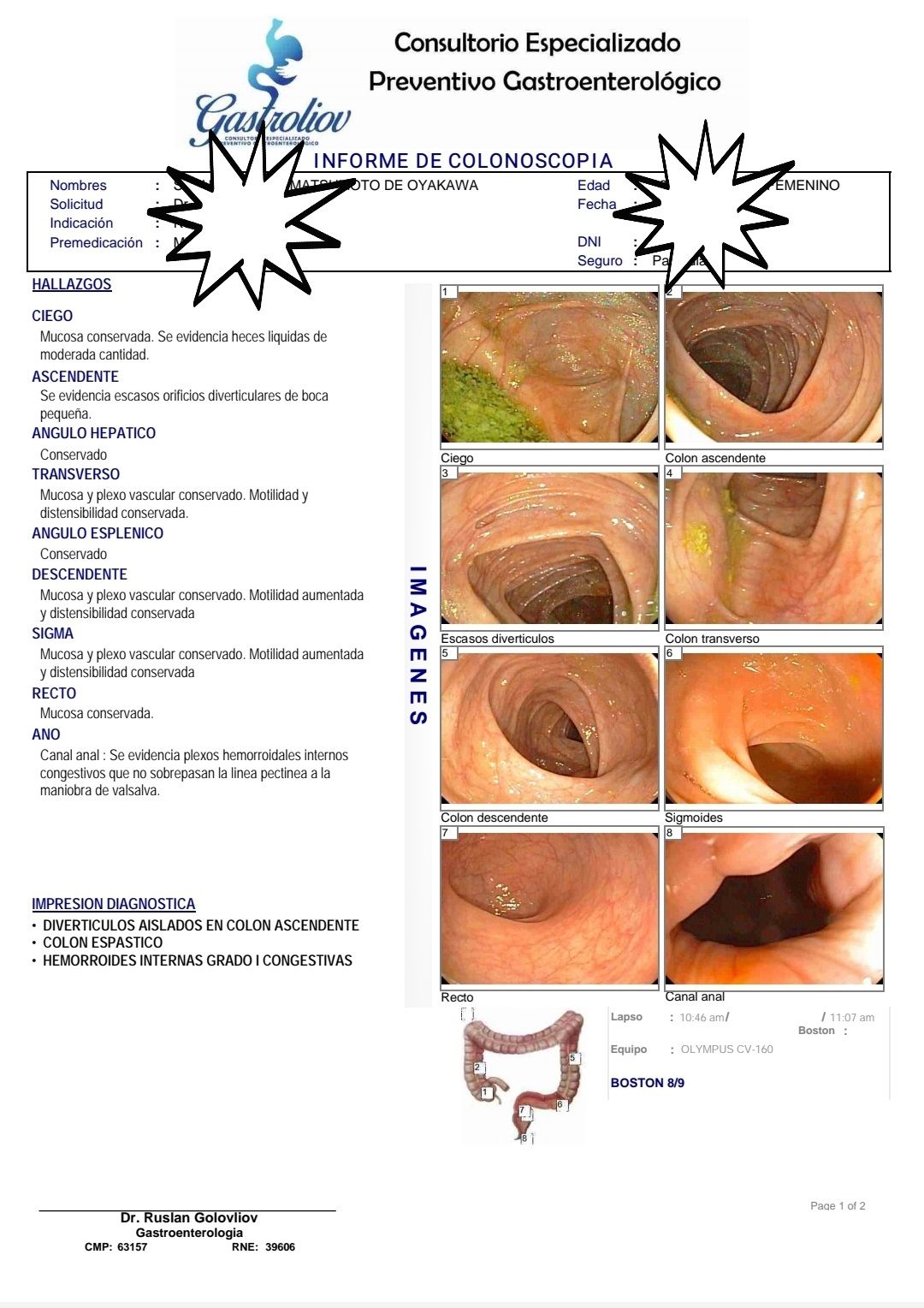Muchas gracias doctor Ruslan , el día de hoy acudí por molestias muy fuertes en el estómago , me realizaron varios exámenes en otros centros médicos , los cuales sólo me crearon miedo .