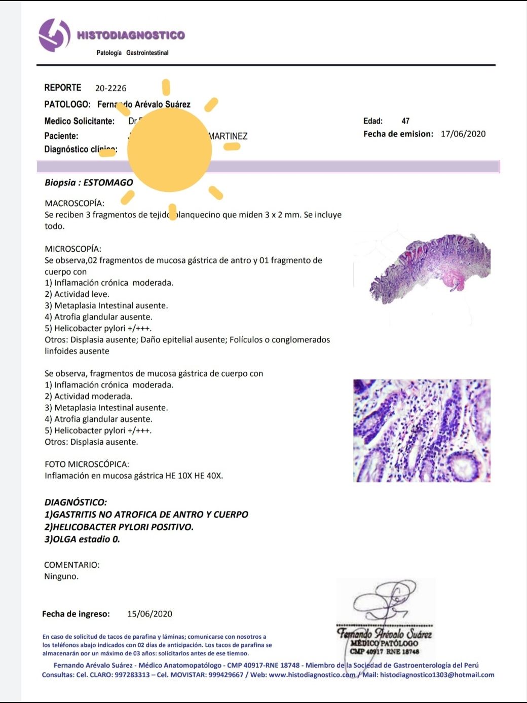 Estoy contenta con la atención del Doctor desde el primer día vi la mejoría y ya con el tratamiento para el Helicobacter estoy convencida que mejoraré al 100%.